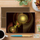 “Intimate Connection” is a captivating abstract artwork featuring luminous golden light, flowing fractal forms, and radiant orbs that symbolize unity, energy, and emotional depth. Warm golds and amber tones contrast with deep shadows, creating a sense of movement and balance that draws the viewer inward.