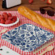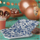 Intricate blue floral pattern on light background paper plates
