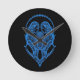 Intricate Blue Gemini Zodiac on Black Round Clock