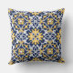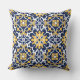 Intricate blue gold white Moroccan arabesque tile Throw Pillow