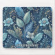 Intricate Blue & Green Botanical -Starry Dark Blue Mouse Pad