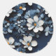 This image showcases an elegant arrangement of blue and white flowers with intricate petals and leaves, creating a sophisticated 3D effect.