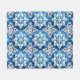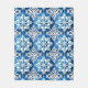Symmetrical and artistic snowflake in vibrant blue tones, featuring intricate geometric shapes and frosty design elements against a white background, evoking a sense of winter and festive beauty.