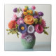 Intricate Crocheted Flower Art- Vibrant Bouquet Ceramic Tile