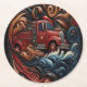 Intricate Fire Truck on Leather Art Round Paper Coaster