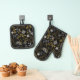 Intricate floral pattern with gold and white oven mitt & pot holder set