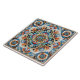 A stunning decorative tile features a captivating floral pattern, bursting with vivid colors of blue, red, and cream. The intricate design showcases a symmetrical arrangement, perfect for enhancing walls or floors in any artistic space.