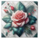 Enhance the aesthetic appeal of your living space with our exquisitely designed floral mosaic featuring a striking central pink rose, complemented by delicate buds and vibrant green leaves, all showcased against a sophisticated marbled backdrop.