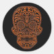Intricate Orange Sugar Skull on Black Classic Round Sticker