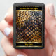 The detailed texture of snakeskin reveals a mesmerizing pattern, showcasing a blend of scales that glisten with hues of dark brown and black. Each scale's unique formation highlights the beauty of nature and the artistry present in even the simplest forms. MONOGRAM ADD YOUR NAME