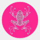 This unique tribal tree frog is decorated with intricate swirls and dot patterns. The frog's feet appear as long flowing lines which gives the symmetrical design an elegant look. This stylized design is a striking representation of this wonderful little creature.