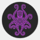 Intricate Purple Octopus on Black Classic Round Sticker