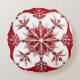 Symmetrical and artistic snowflake in vibrant red tones, featuring intricate geometric shapes and frosty design elements against a white background, evoking a sense of winter and festive beauty.