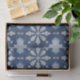 A seamless pattern of white snowflakes on a blue surface, evoking winter and holiday vibes. Perfect for seasonal designs, Christmas decorations, and textured backgrounds. Represents cold, purity, and holiday atmosphere.