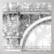 Intricate Steampunk Scaffolding Technical Line Art Poster