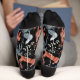 This fun Halloween socks are bright and colorful. The small print is crisp and shows the fun details. The softness of the socks feels nice on my feet and ankles. .