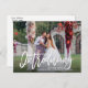 A rustic lettering overlay design with white typography brush script. The text on the front and the message at the back can be personalized.