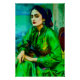 An AI-generated portrait of an introspective woman in a green dress