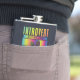 Well made flask, a little better than I had expected. Flask came in clear plastic box which gave it a nice presentation when I took it out of the zazzle packaging. Image is not printed on flask but on sticker. Don't know how this will hold up I haven't used it yet. This would make a Great gift! I plan to purchase more for friends! Cheers. I thought a little brighter than computer. Very crisp, writing wasn't