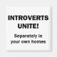 For the sarcasm lover in all of us. Check out this witty “Introverts Unite! Separately in Your Own Homes” design on apparel, mugs, mousepads, buttons, and other unique gifts.