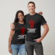 My 11 yo wore adult XL (5’7” 165#). The 8yo is small framed. She wore adult small and tied it in the back. Grandma wore adult large with long sleeve shirt underneath. Tall girl adult medium. Dark haired male adult large. Good quality dark Heather gray, Gildan brand shirt. -it was next up from basic choice and cost about $20 per shirt. Not too thick or thin. Washed and dried well, no major shrinkage. Not see-through. Can wear a bra under it fine. Screen print is just as shown and well done, front and back.
