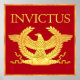 Invictus - invincible, unconquerable. Show your own unconquerable spirit on your wall with this bold and dramatic poster. This is a version of the Invictus design featuring dark gold outlines rather than the ancient gold set directly against the red background - it makes for a solid, engraved look.