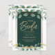 Invitaciones de Boda Bilingües Verde Esmeralda y Oro con Hojas de Eucalipto"