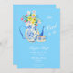 This invitation featuring floral blue and white tea pot with bright colorful flowers is perfect for the most lovely bridal shower.