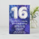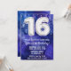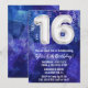 Boy blue white 16th Birthday invitation boys 16 birthday party invitation for a boy blue purple with modern script writing and fun foil balloons.