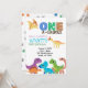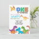 One A Saurus dinosaur themed first birthday invitation.