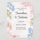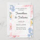 Delicate and charming floral wedding invitation featuring soft pastel flowers in shades of pink, blue, and yellow. The elegant layout highlights the couple’s names in a graceful script font, framed by a subtle pink border. Ideal for spring and summer weddings, this invitation blends romantic style with a fresh garden theme. Fully customizable to include your event details, making it a perfect choice for a classy and timeless wedding announcement.