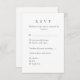 This is a classic RSVP reply card for a wedding invitation. It includes a line for guests to fill in their names, checkboxes to indicate acceptance or regret, and a section to specify the number of attendees and meal preferences. It maintains a traditional and elegant style, while providing essential information for the hosts.