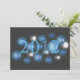 Year is superimposed over 3D bubbles in blues and white, on black background. (Change date for the new year) Back: "Where will you be when the clock strikes 12? Come join us for a New Years party" with clock face in lower left corner. Personalize with host, location, time and rsvp information