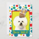 Invite your guests with this whimsical Bichon Frise Dog Greeting Card. With a cupcake balanced on it's head, this design is sure to bring a smile and giggles! BTW, This design has several versions, with different background colors. There is also a Happy Birthday version.