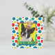 Invite your guests with this whimsical Boston Terrier Dog Greeting Card. With a cupcake balanced on it's head, this design is sure to bring a smile and giggles! BTW, This design has several versions, with different background colors. There is also a Happy Birthday version.