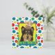 Invite your guests with this whimsical Collie Dog Greeting Card. With a cupcake balanced on it's head, this design is sure to bring a smile and giggles! BTW, This design has several versions, with different background colors. There is also a Happy Birthday version.