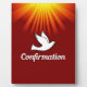 On your daughter’s Confirmation, it is a special event. This invitation has a red background with rays featuring the seven gifts of the Holy Spirit. Customize with her name on the front and add the details inside.