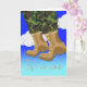 The Sky's the Limit themed invitation for a boot camp send off party for a male. A digital illustration of a pair of camouflage pants with boots going up into the sky with clouds is on the cover of the card. Customize the interior of the invitation as you like before purchase. Consider using this design for other occasions such as boot camp or basic training graduation if you like. Art, image, and verse copyright © Shoaff Ballanger Studios, 2021.