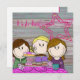 cheerful card with an illustration of 3 girls.