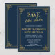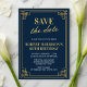 🥂Announce your milestone celebration with this elegant Navy and Gold Art Deco Save the Date. Perfect for an 80th birthday, this sophisticated design combines the announcement and event details in one prestigious card. Easy to personalize for your special day. ✨