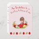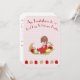 Invitation to a Red Egg and Ginger Party to introduce your new baby. This is a formal party with gowns, usually a Chinese celebration. The design is a baby dressed in red, a half floral wreath with flowers, red eggs and ginger. Thanks to Creative Fabrica for some of the elements in the design.
