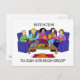 An illustration of a group of people sitting around a low table, talking about books and reading books. The words 'Invitation to our book group' accompany the image, which is set against a white background.