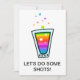 A brightly colored shooter filled with an 80 proof rainbow of cocktail fun, sparkling out star bubbles in a classic shot glass design. Perfect party design for any happy hour celebration.