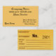 Yellow merchandise invoice ticket on back of your business card. Customize with your company information.