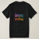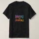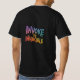 The t-shirt design features the phrase "Invoke the Invincible" in a bold, multicolored font. Each word could be a different vibrant color, creating a dynamic and eye-catching look.