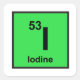 Sticker with the atomic number and chemical symbol for iodine. Great for high school classes!