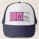 Ione spelled out as I O Ne (Iodine Oxygen Neon) on a hat for the scientist in you.