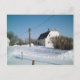 A barn as seen from the road on a farm in Iowa in the winter without any effects or touch ups. The shrubs are lilacs.