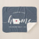 Show some home state pride with this cute rustic blue throw blanket featuring "home" in white calligraphy script lettering with a silhouette map of the state of Iowa standing in for the letter "O." A red heart illustration inside the state map completes the design; you can change the position of the heart to your home city by opening the design tool and dragging the heart shape to your favorite spot. Personalize with your home city, family name and year established to create a perfect and memorable housewarming gift or addition to your new home.