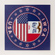 Badge of Iowa with flag of Iowa and flag of USA colors, rounded shape.